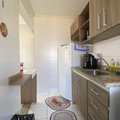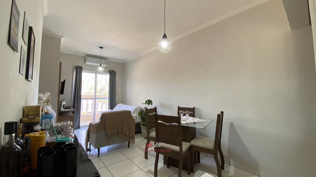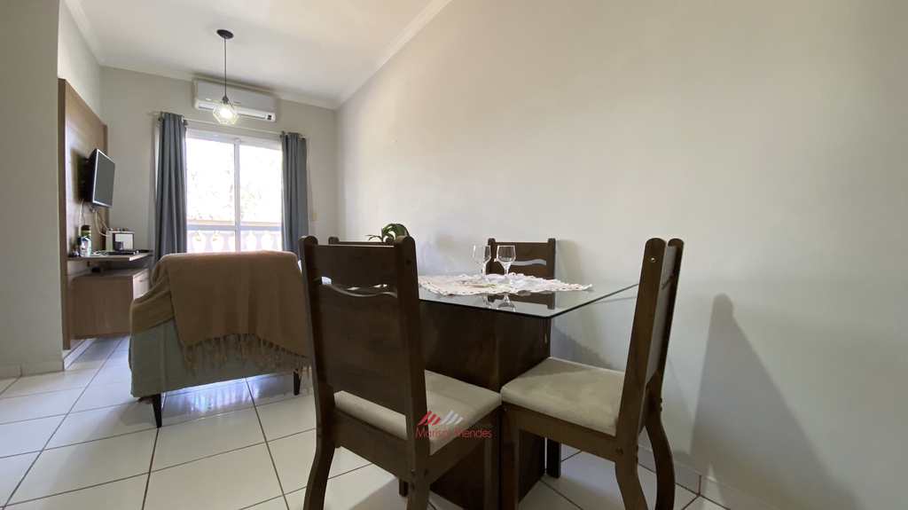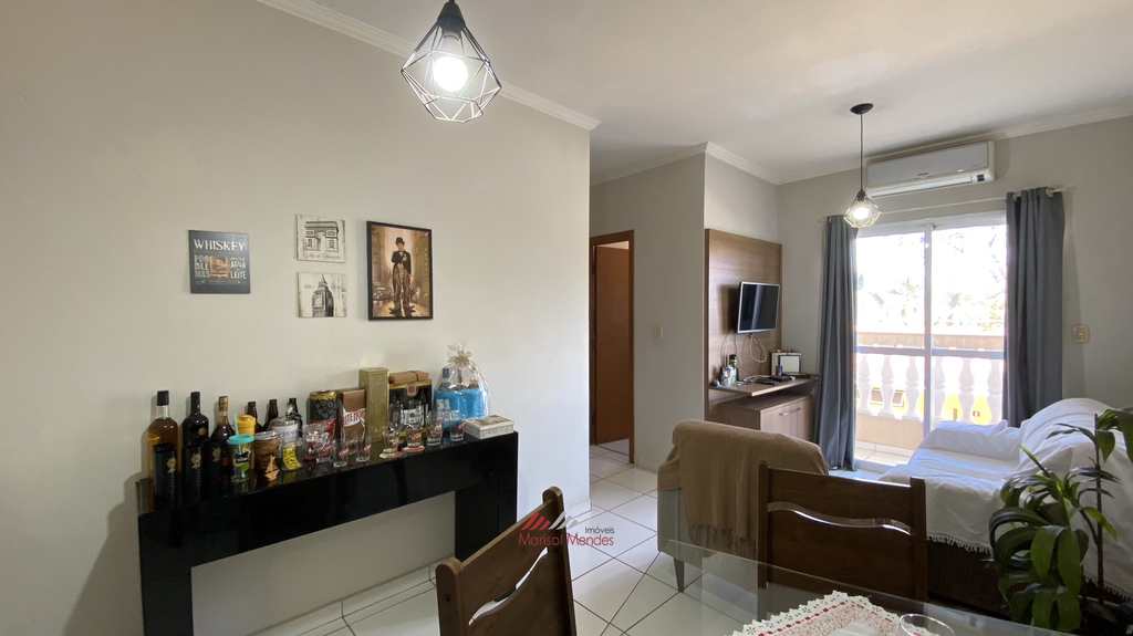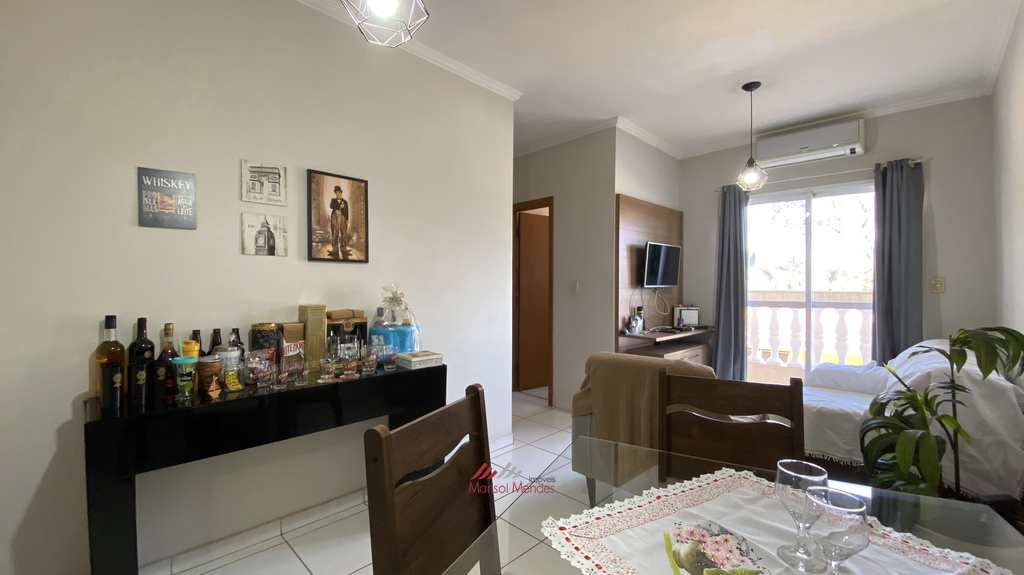 Sala de estar e jantar integradas, com sacada e ar-condicionado